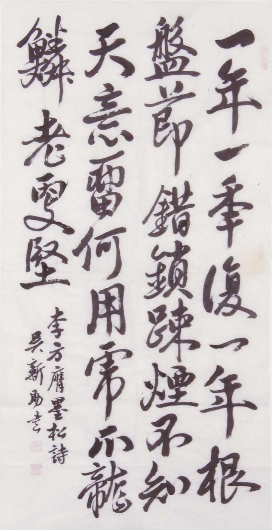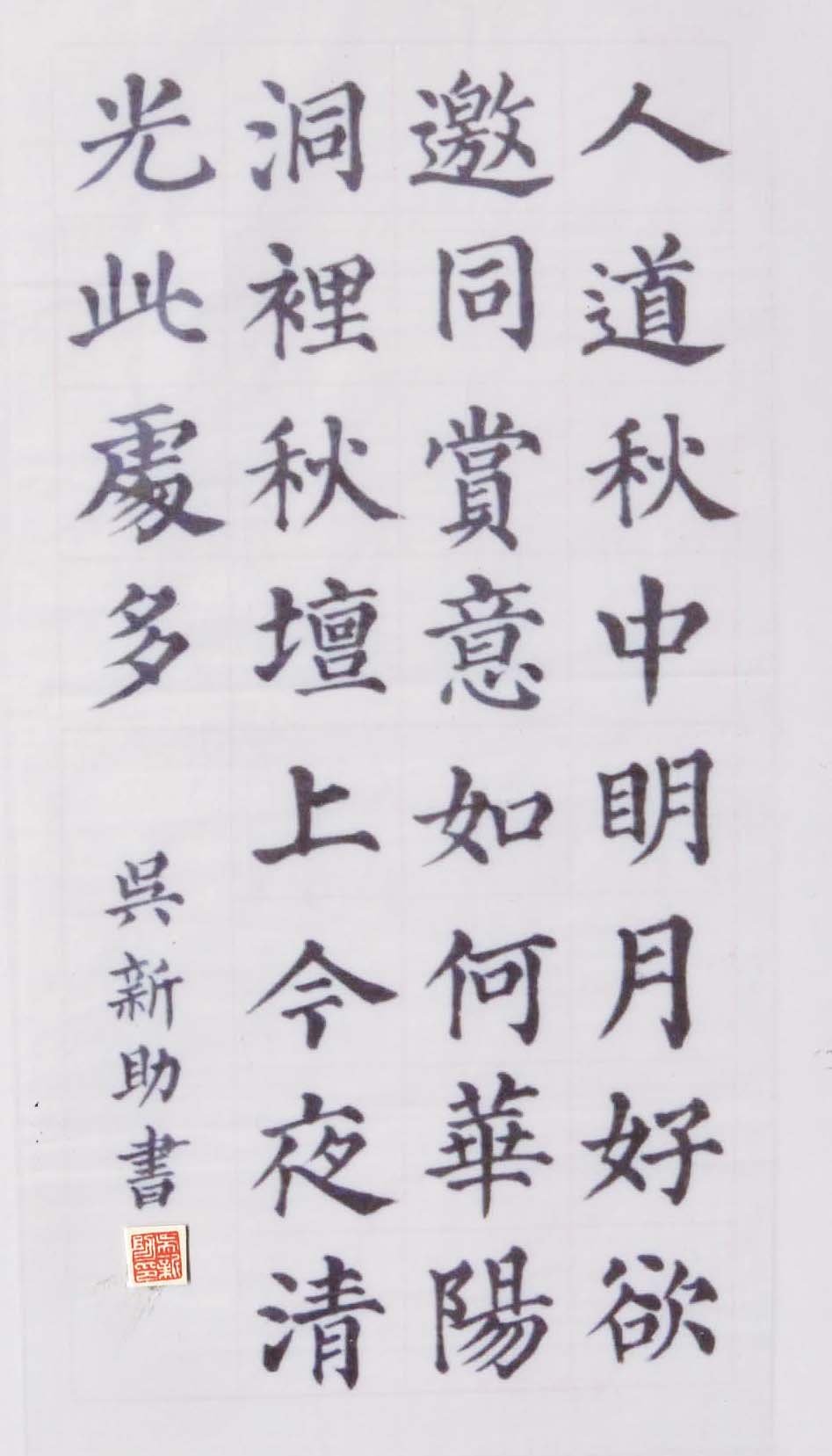 E002 吳新助---白居易華陽觀中八月十五日夜招友玩月 楷書 35x70cm