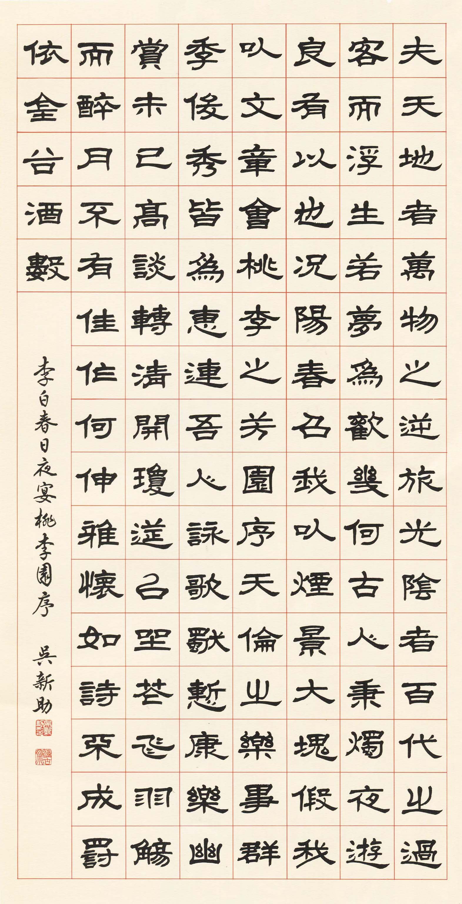 E007 吳新助---李白春日夜宴桃李園序 隸書 70x135cm
