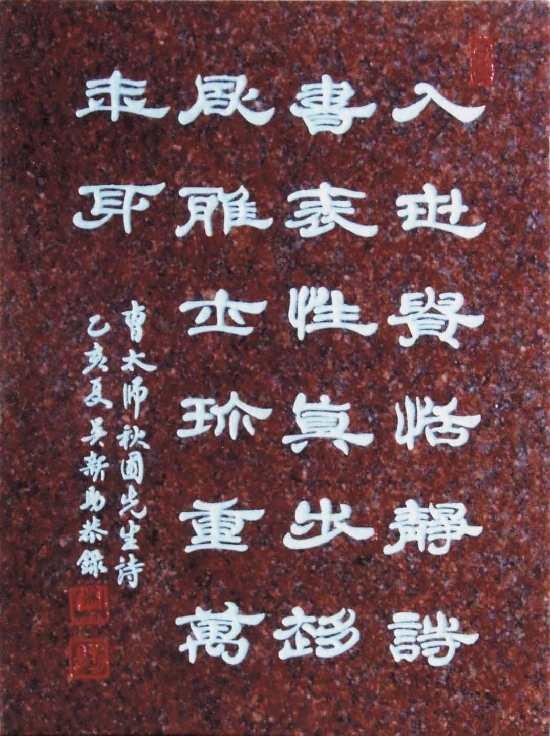 E011 吳新助---前賢聯句 行草 刻碑 30x40cm